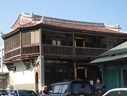 ,有兩層樓,一樓為磚造,二樓全為木造,日本伏見宮貞愛親王曾駐守八角樓,庭院內現有「伏見宮貞愛親王御遺跡鹽水港御設營所」石碑。