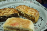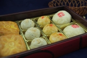 蓮蓉、紅豆抹茶麻糬、香菇魯肉、核桃烏豆沙、鳳黃酥、伍仁餅