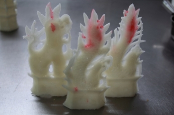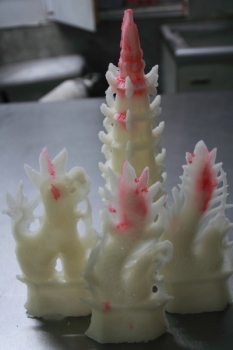 將糖漿灌入糖塔印模內,使糖漿成塔形、獅形或龍鳳等形狀常用於拜天公、建醮、祝壽、婚嫁迎娶,以表長壽、甜蜜。